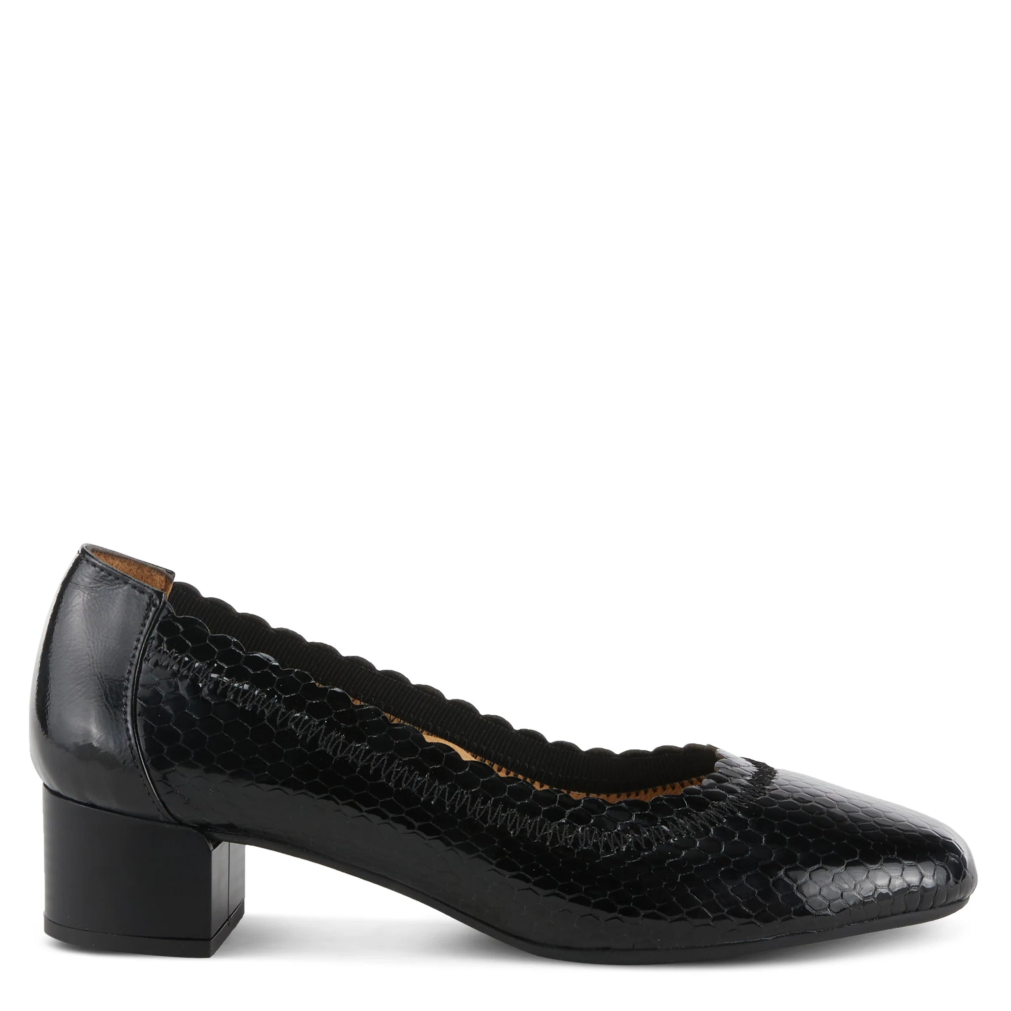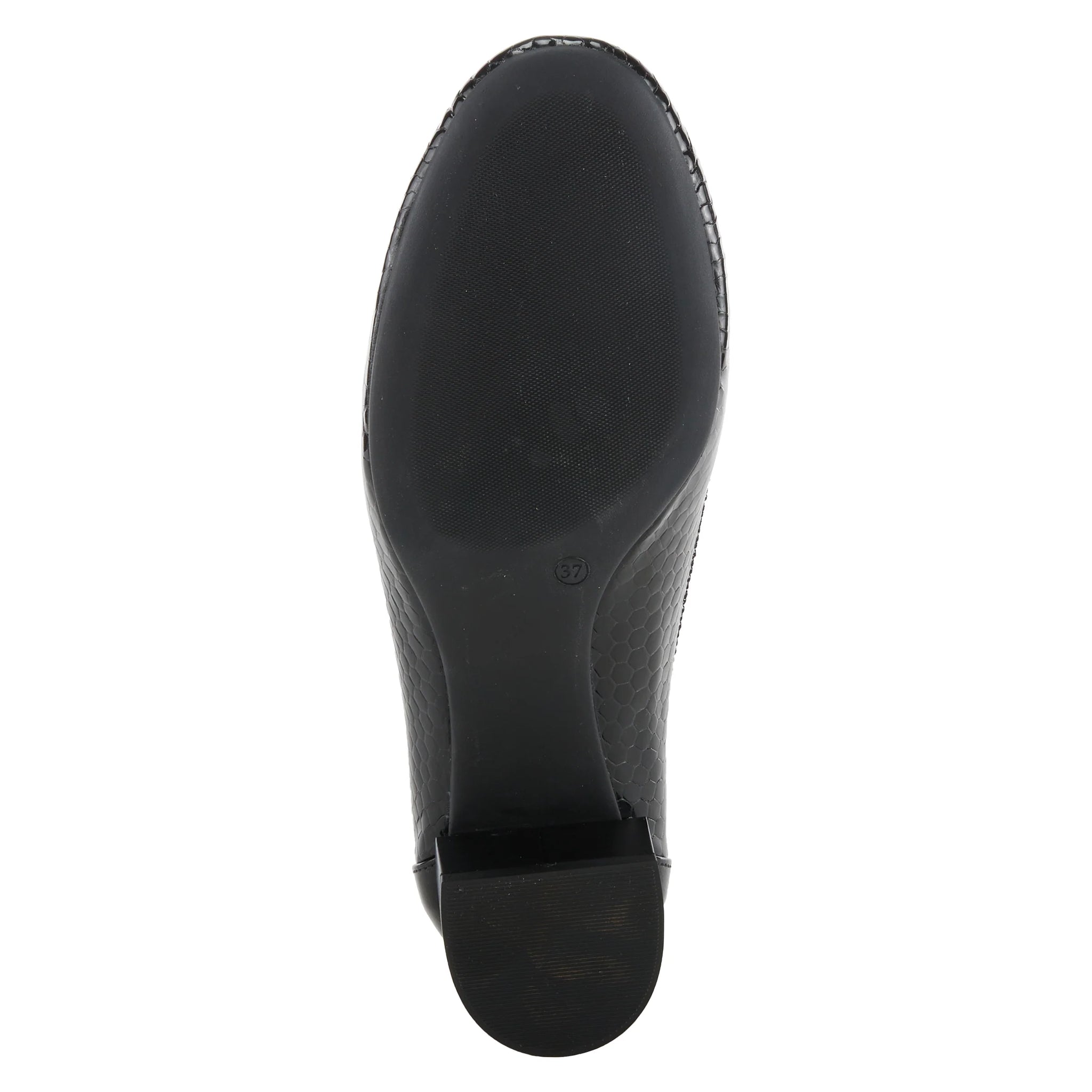 This traditional ballet flat gets a modern update with a block heel and embossed faux snake skin patent leather. The all-day comfort insole with arch support ensures lasting comfort, making these flats perfect for long days on your feet. These timeless flats are a versatile addition to any wardrobe, pairing well with both casual and dressy outfits.