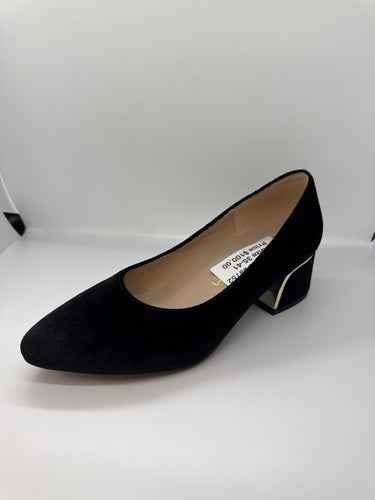 REBAJAS SP24 1936 Zapato Carla liso, tacón medio dorado, cubo (193622)