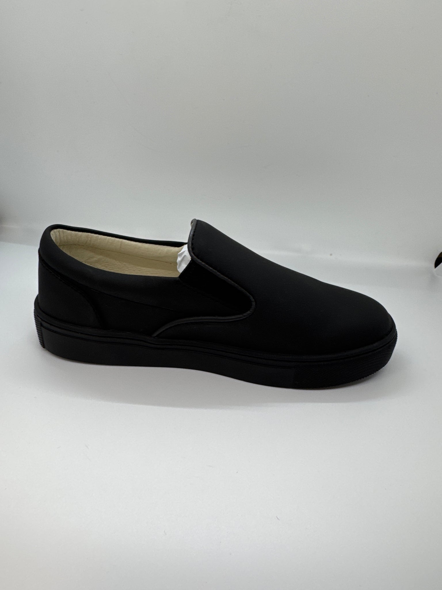 Zapatilla negra sin cordones. Suela flexible inyectada.