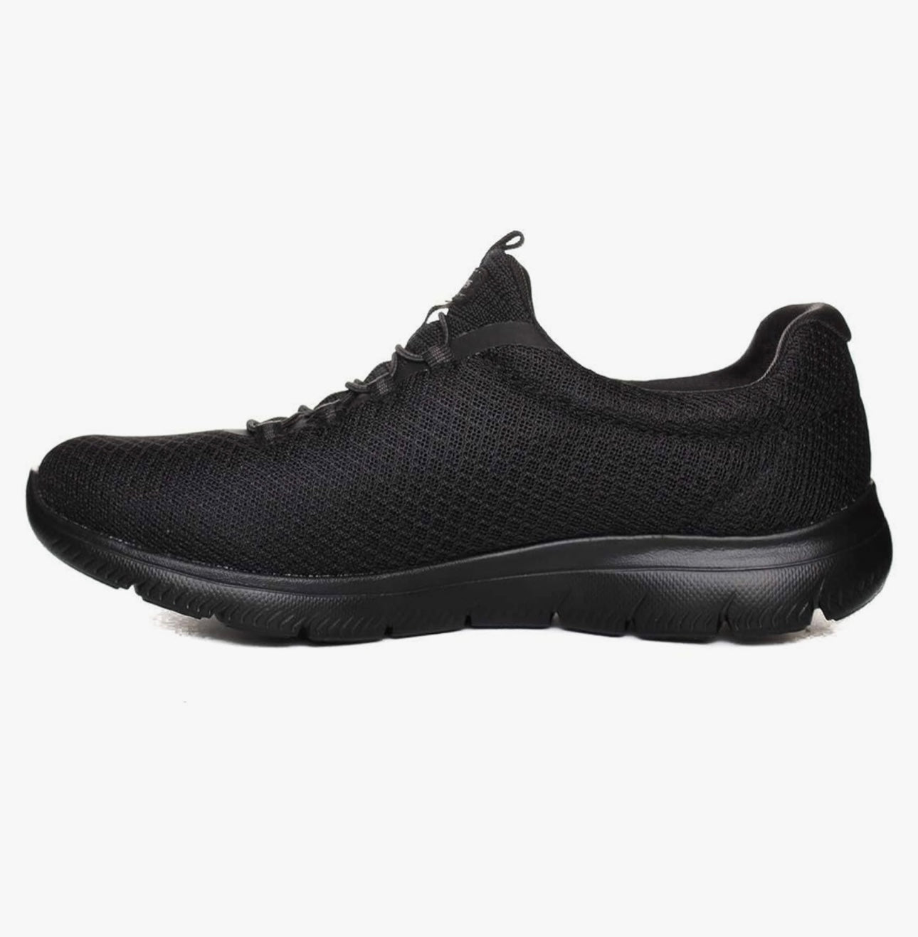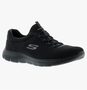 Step out in fabulous style and comfort wearing Skechers Summits. This sporty design features a metallic Stretch Fit® knit upper with stretch laces and a cushioned Skechers Memory Foam™ insole.
