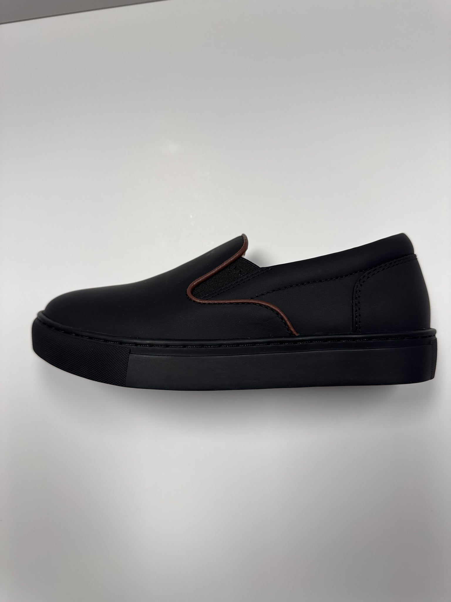 Black slip on sneaker. Flex injection sole.