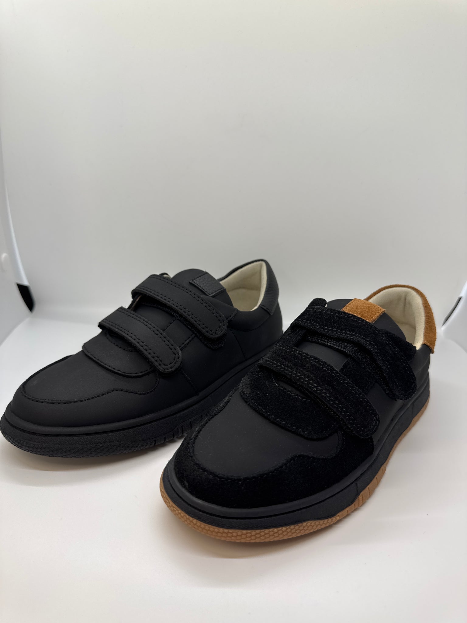 Sneakers with round toe. Leather uppers with beautiful stitching. Three Velcro straps help you adjust the fit making these shoes very comfortable. A comfortable alternative to lace-up sneakers for kids who love a casual style.